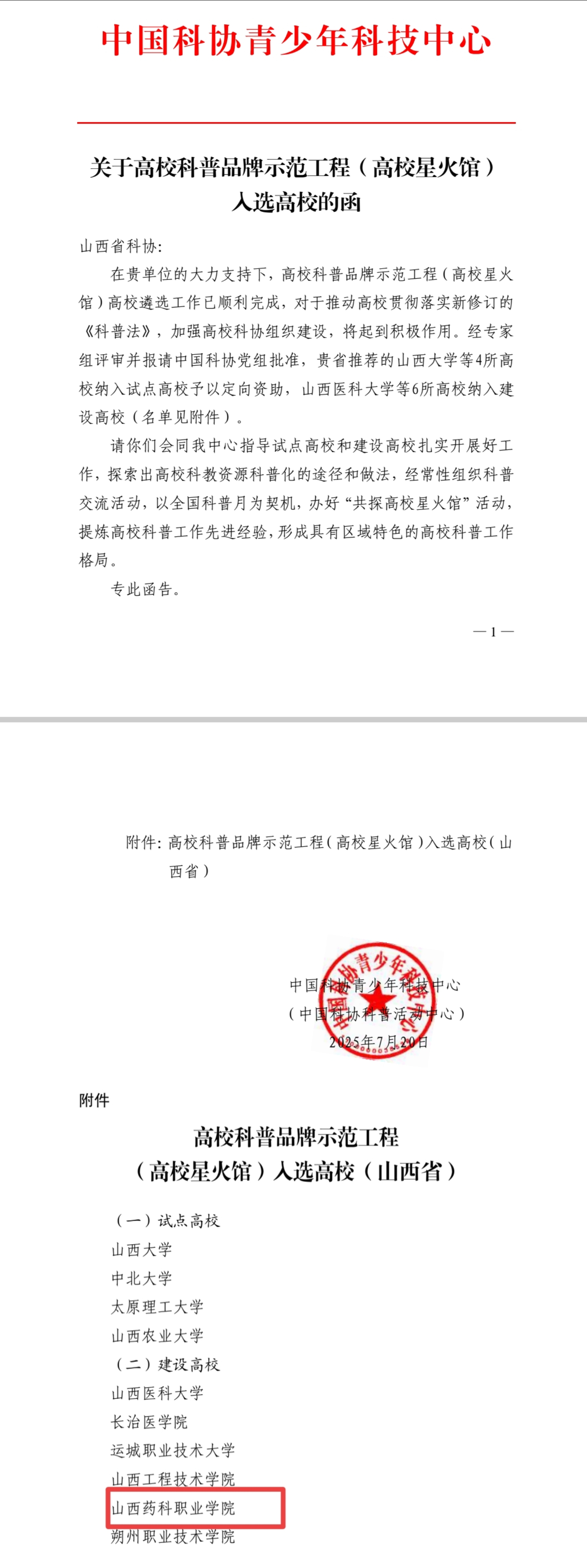 近日,中国科协青少年科技中心正式公布2025年度“高校科普品牌示范工程(高校星火馆)”入选名单,我院成功入选建设高校行列。