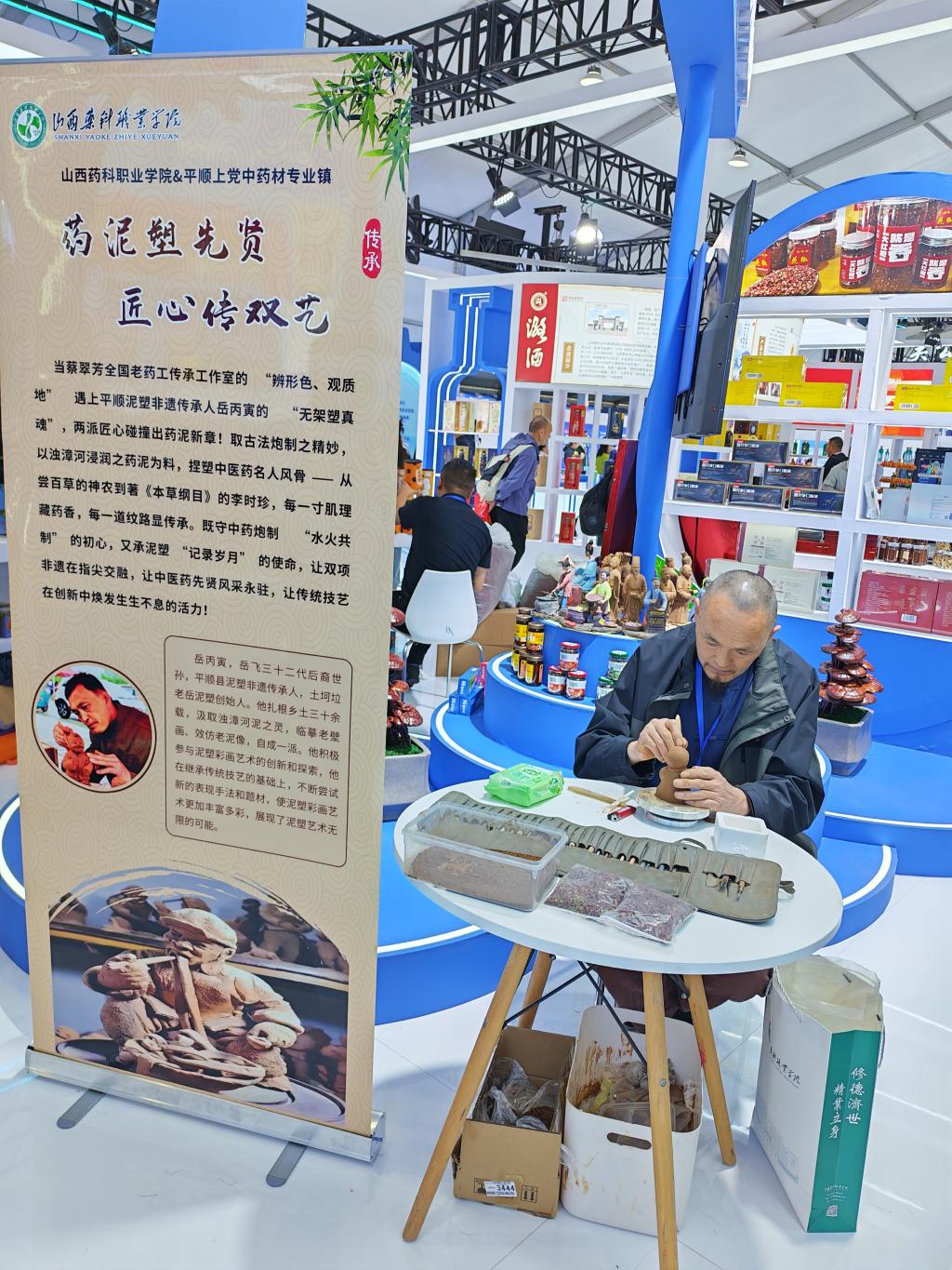 9月17日,第三届山西特色专业镇投资贸易博览会于大同启幕。我院师生团队携“十大晋药”科创成果与非遗文化创新项目惊艳亮相,以“晋药粉末+泥塑艺术”的跨界融合之姿,迅速成为展会焦点。